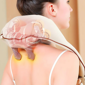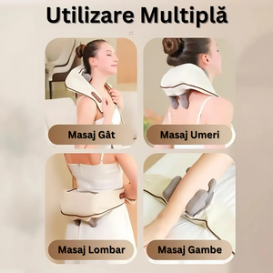 Aparatul de masaj cervical hands-free este conceput pentru masajul zonei gatului, umerilor si spatelui. Dispozitivul utilizeaza role de masaj tip Shiatsu 5D care imita miscarea unui masaj manual, oferind o experienta confortabila de relaxare.