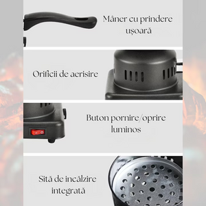 Aprinzătorul electric pentru cărbuni este destinat încălzirii rapide a cărbunilor pentru narghilea. Are putere de 1000W și permite reglarea temperaturii prin potentiometru.