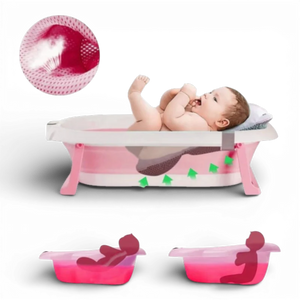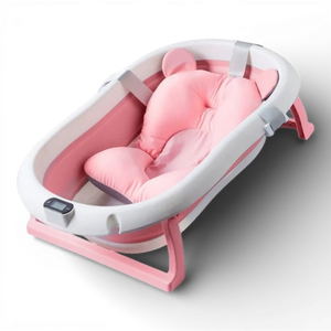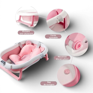 Cadita pliabilă pentru bebeluși este destinată utilizării acasă sau în deplasare. Modelul este echipat cu pernă de susținere și termometru digital integrat pentru monitorizarea temperaturii apei în timpul băii.