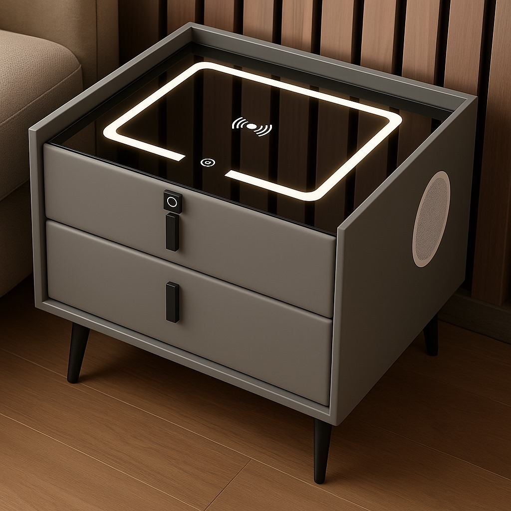 Noptiera inteligentă este o piesă de mobilier modernă pentru dormitor, care combină spațiul de depozitare cu funcții tehnologice integrate. Varianta albă este potrivită pentru interioare moderne, minimaliste sau spații luminoase.