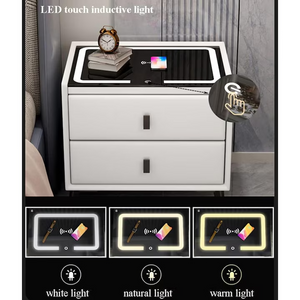 Noptieră inteligentă M2 cu 2 sertare, blocare cu amprentă, iluminare LED, încărcare wireless și USB-C, Alb, 45 x 40 x 60 cm