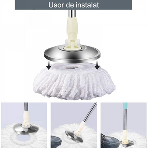 Setul de mop rotativ 360 este conceput pentru curatarea eficienta a pardoselilor din locuinta. Sistemul include galeata din ABS rezistent, cuva din inox si mop cu mecanism rotativ pentru stoarcere rapida.